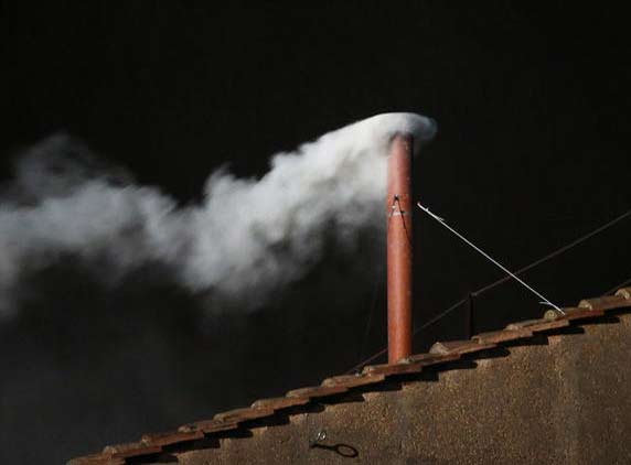 For the White Smoke, they use Potassium Chlorate, lactose and a pine resin along with the ballot papers. The first stove burns the ballot papers while another stove which is triggered later will emanate the smoke with the color that is indicative of the decision.